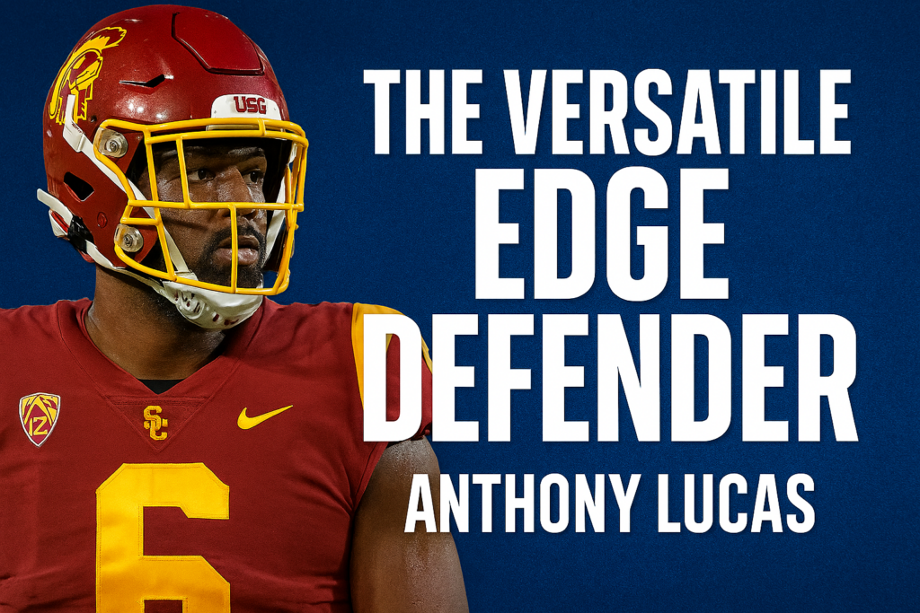 Anthony Lucas enters the 2026 NFL Draft as one of the most physically gifted and scheme-diverse edge defenders in the class, blending power, length, and positional versatility into a disruptive package that’s finally matured at USC. Once a five-star recruit with a winding college journey, Lucas now projects as a Day 2 pick with starter upside and a ceiling that could exceed expectations in the right system.